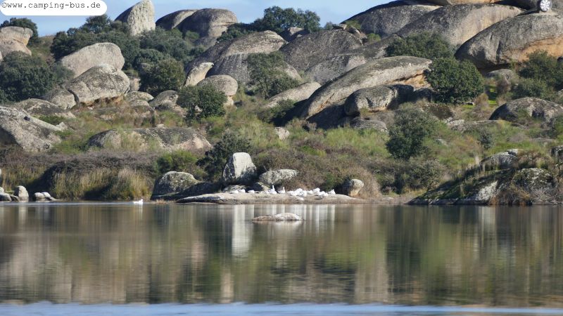 Bei unseren Wanderungen durch die Felsenlandschaft von Los Barruecos westlich von Cáceres erkennen wir unter anderem Schildkröten und einen Eisbären, der aus dem See steigt.