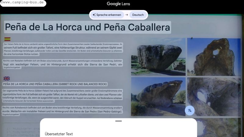 "Interessant" sind auch die Übersetzungen von Google Lens aus den spanischen und englischen Erklärungen zum Peña de La Horca und Peña Caballera :-)