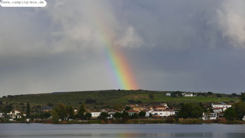 13./14.01. Malpartida de Cáceres/ Los Barruecos - Stausee Proserpina bei Merida 81 kmDen Dienstag verbringen wir am Stausee Proserpina bei Merida - es wird unser letzter Tag mit Bella sein :´( Auf Regen am Nachmittag folgen Abendsonne und ein Regenbogen - welch eine Symbolik!