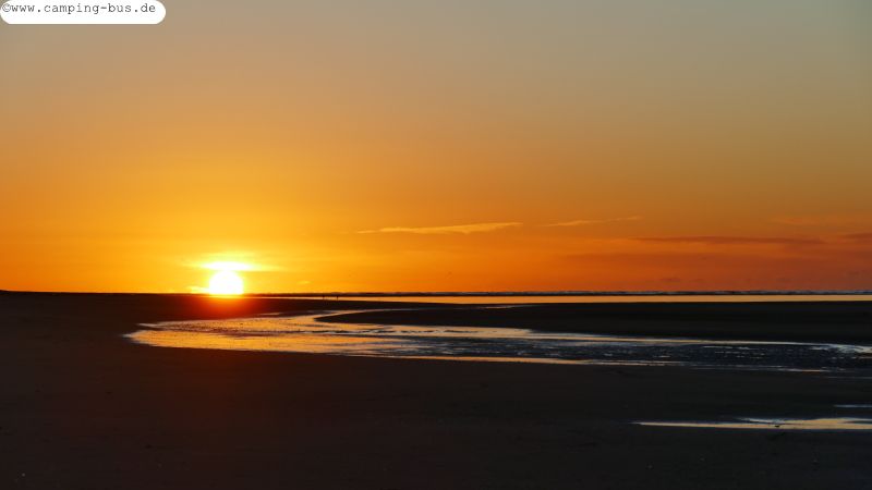 Samstagmorgen bin ich gerade rechtzeitig zum Sonnenaufgang am Strand.