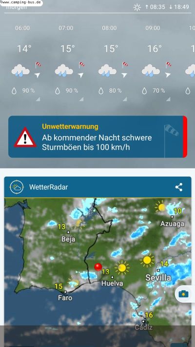 Dann kommt allerdings die Sturmwarnung für die nächste Nacht: 100 km/h!