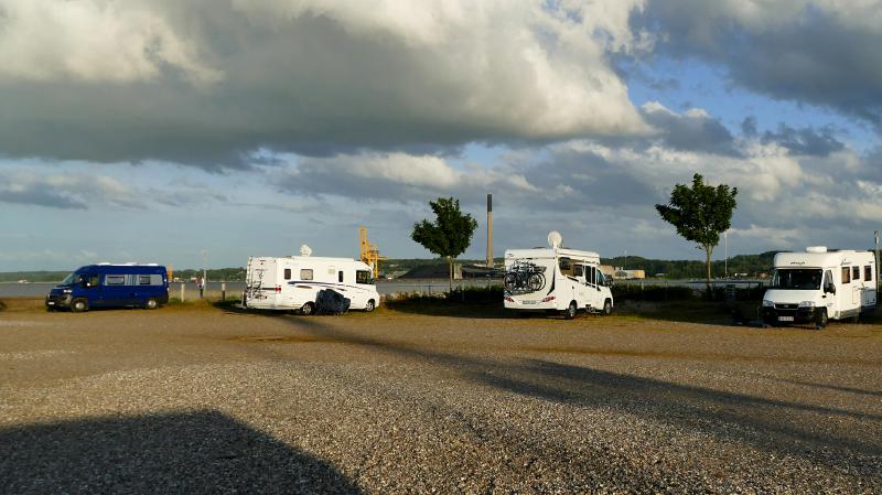 Sonntagmorgen verlassen wir den schönen Lillebælt Camping auf Alsen. Aufgrund des bewölkten und regnerischen Wetters verzichten wir auf einige Sehenswürdigkeiten am Wegesrand und fahren nach dem Einkaufen auf den Wohnmobilstellplatz am Jachthafen Apenrade. Der erste Platz in der ersten Reihe ist frei, welch ein Glück!