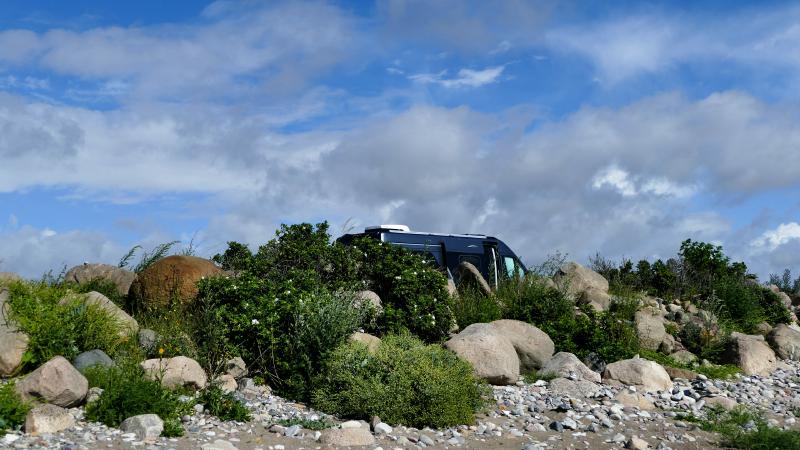 Wir bleiben nicht lange allein, da kommt doch tatsächlich ein Campingbus durch die Felder! Das ist allerdings kein Zufall. Hier haben wir uns mit Andrea und Matthias verabredet. Seit dem Verlassen des Lillebelt Campingplatzes vor einer Woche waren wir auf getrennten Wegen unterwegs. Hier verbringen wir zwei weitere Tage gemeinsam bei abwechslungsreichem und stürmischem Wetter.