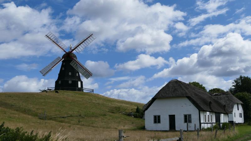 Vom Südpunkt Langelands fahren wir nun wirklich nach Norden - wohin auch sonst :-) Weit kommen wir allerdings am Dienstag nicht mehr. Am Wegesrand bremsen uns zum Fotografieren ein Steinzeitgrab, das Fischerdorf Bagenkop, ein schöner alter Gutshof, eine Windmühle, ein Erinnerungsstein für gerettete Kriegsgefangene und ein Container-Riese. Ganggrab Hulbjerg