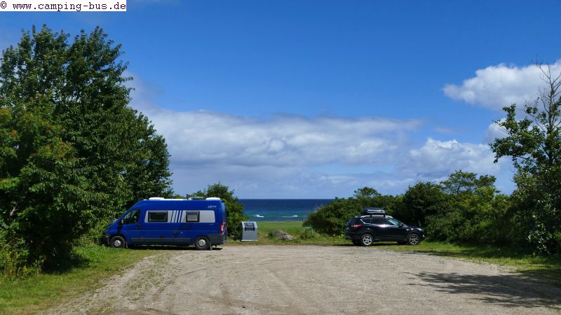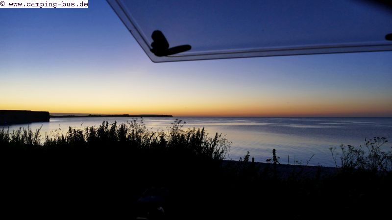 28./29.07. Rygårde-Strand - Sangstrup Klinter 33 kmDonnerstag fahren wir an die Nordostküste der Djursland-Halbinsel. Auf dem Parkplatz von Sangstrup Klinter haben wir mal wieder Glück: Reihe 1, Platz a mit freiem Blick auf die Steilküste in beide Richtungen und auf´s Meer.