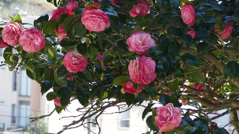 In den Orten an der asturischen Küste blühen in den milden Wintermonaten viele Kamelien.