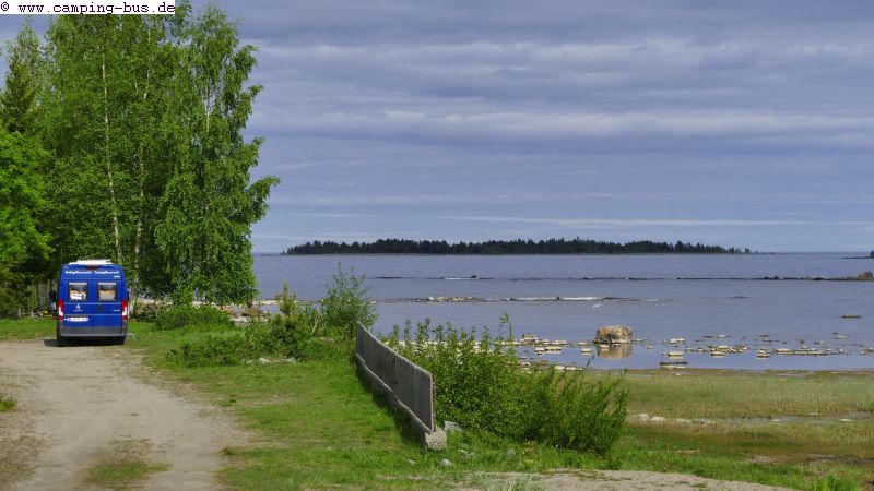 Vom Platz kann man die Frachtschiffe auf dem Weg nach und von Skelleftehamn und kleine Inseln sehen.