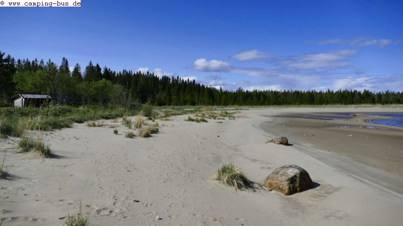 Mit dem Wohnmobil an der schwedischen Ostseeküste südlich von Piteå und über Lycksele nach VilhelminaTeil 5 von 12: Reisen mit dem Wohnmobil durch Schweden im Frühjahr und im Herbst 2023 Wir bleiben einige Tage an der Ostseeküste südlich von Piteå an einer vogelreichen Bucht und einem Sandstrand "vom Feinsten". Dann wenden wir uns wieder landeinwärts durch blühende Wiesen nach Westen. Wir besuchen einen "Diversitätspark", in Lycksele ein Freichlichtmuseum mit alten Gebäuden sowie den Rest der Altstadt von Vilhelmina. 01. bis 03.06. Bucht von Mörön - Piteå Strand - Friluftscamping Harrbäckssand 139 kmAm Strand von Piteå machen wir einen Kurzbesuch, das Wetter lädt nicht zu einem längeren Aufenthalt ein. Über mehr als zwei Kilometer zieht sich der schöne Strand mit feinem Sand. Am Westrand liegt der riesige Campingplatz von Pite Havsbad. Mit 873 Stellplätzen soll er der zweitgrößte Schwedens sein, habe ich kürzlich irgendwo gelesen. Beim Vorbeifahren sind wir überrascht, wie gut belegt er jetzt schon ist ( kein Foto gemacht ) .