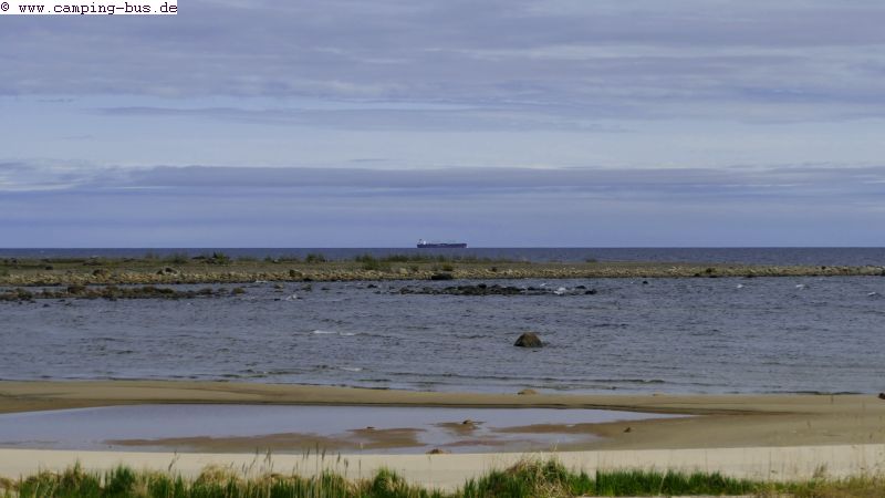 Aus dem Wohnmobil sehen wir einige Schiffe auf dem Weg von und nach Skellefteå und Luleå.