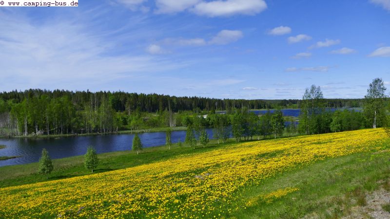 05. bis 07.06. Bjuröklubb - Tjäderbergets Mångfaldspark 179 kmNach einer Woche verlassen wir die Ostseeküste und fahren landeinwärts. Über zig Kilometer begleiten uns bei blauem Himmel gelb leuchtende Löwenzahn-Wiesen.