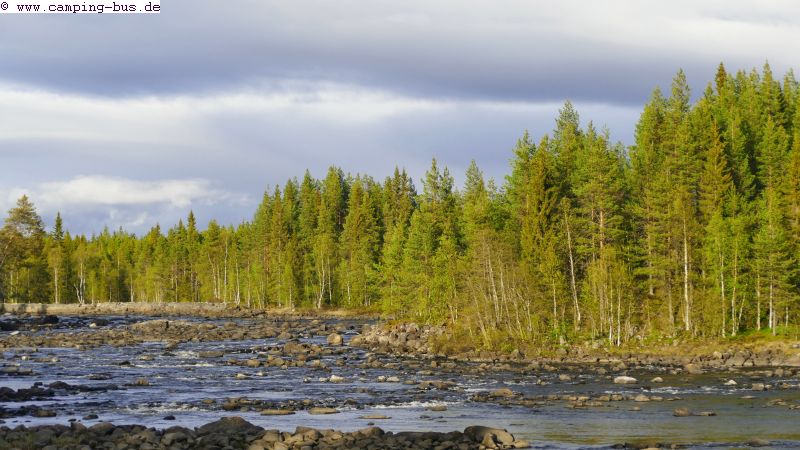 Unsere Tour endet Mittwoch an den Stromschnellen von Bäsksele. Erstaunlich wenig Wasser gibt es hier im Fluss Vojmån.