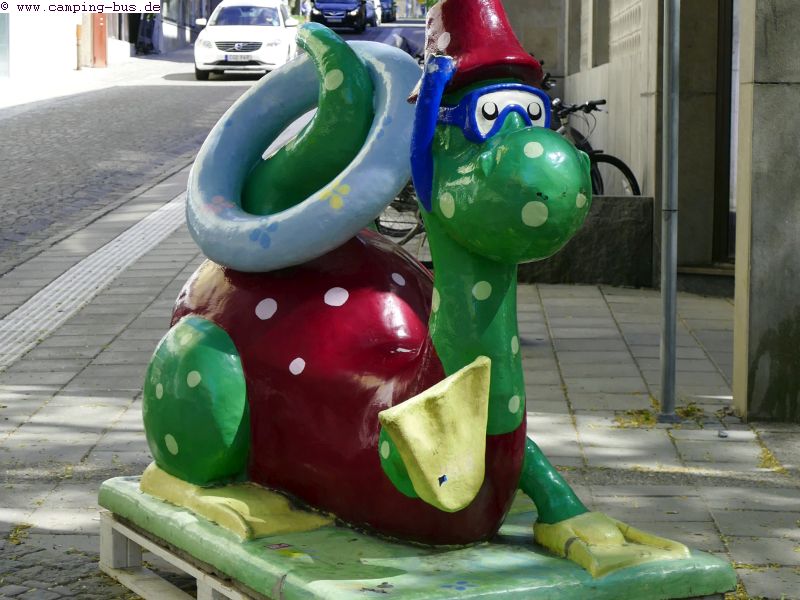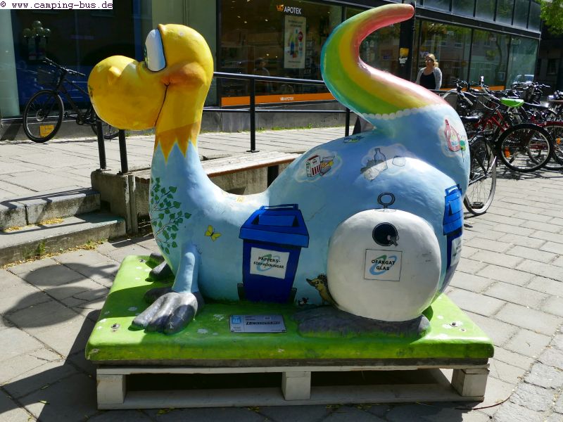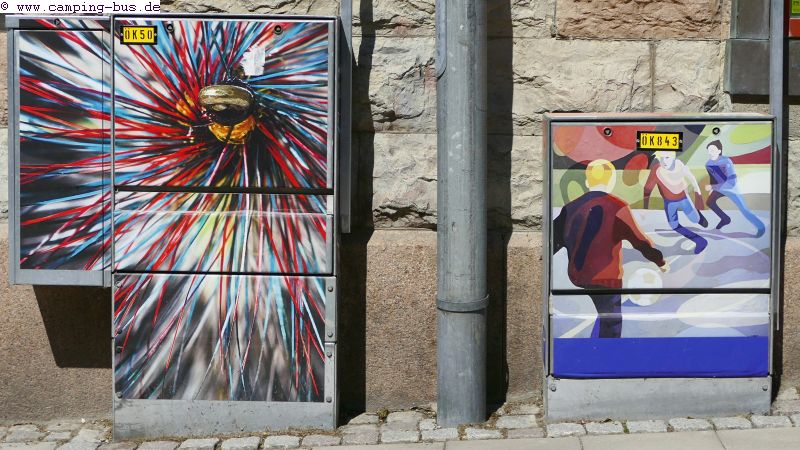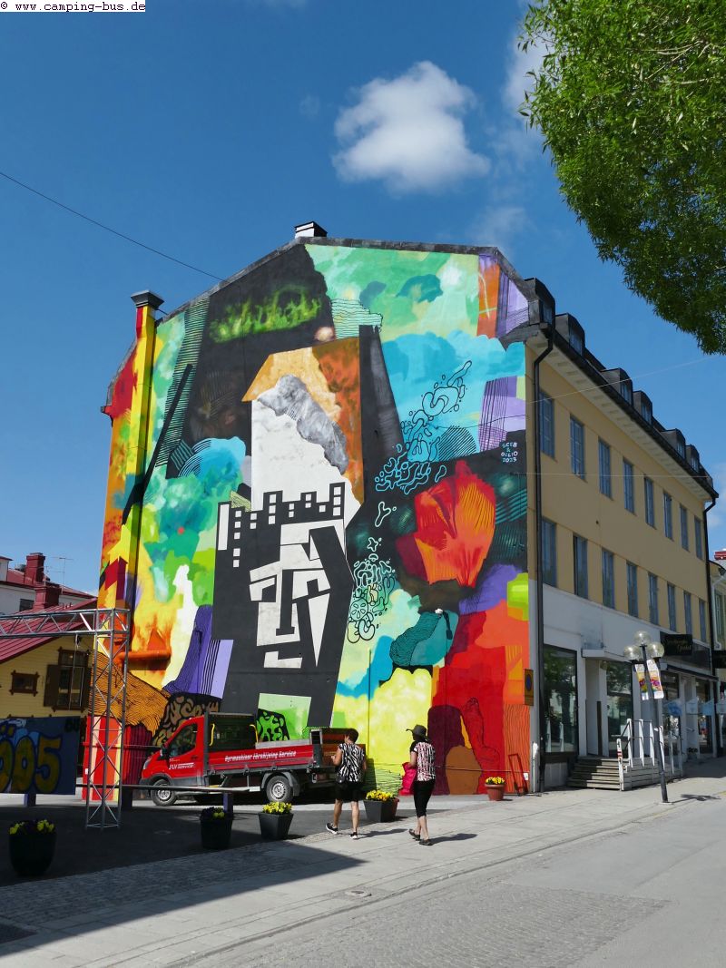 Das Stadtbild beleben bunt bemalte "Seeungeheuer vom Storsjön" , Häuserfassaden und Stromkästen.
