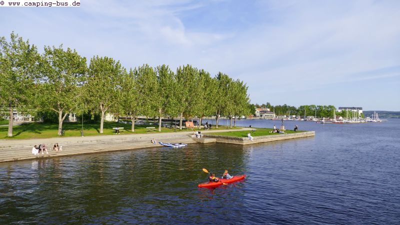 Neben dem Langzeitparkplatz liegt die "Hafencity" von Östersund. Was für ein Ausblick auf den See am Sommerabend und auf die Eisfläche im Winter.