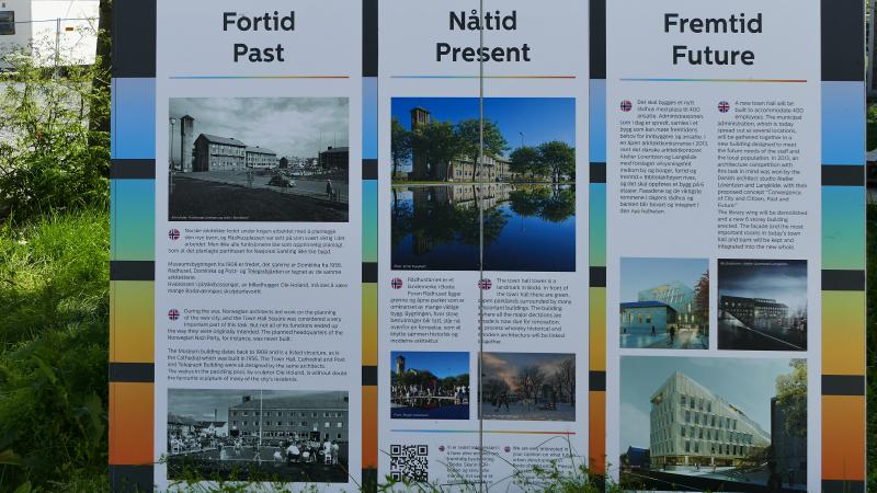 Informationen zum Neubau des Rathauses, rechts unten das zukünftige Erscheinungsbild