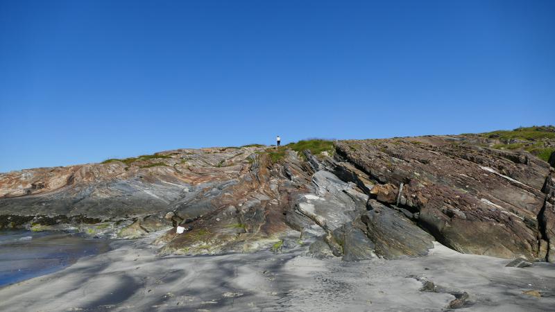 Unter uns liegen glatt geschliffene Felsen mit schönem Muster, ...