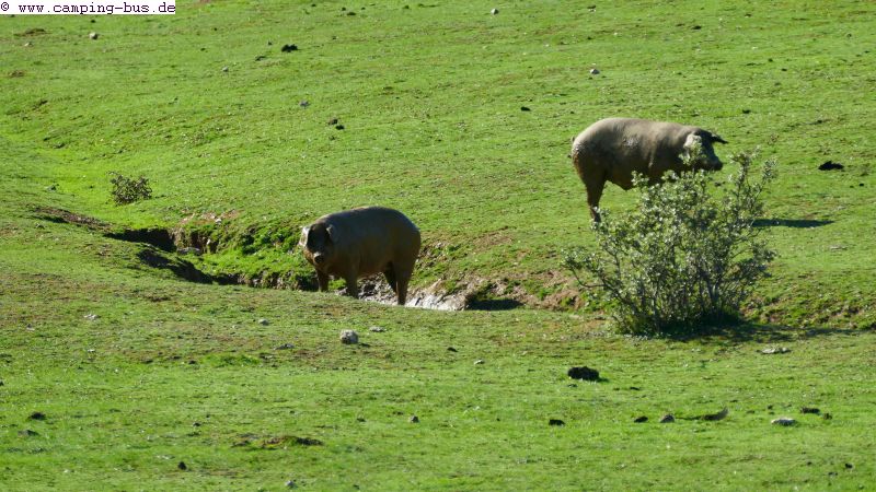 Hier ist "Schweineland"! Was für eine tolles Schweineleben haben die hier - riesige Flächen mit freiem Auslauf, Plätze zum Suhlen nach Schweineslust und "Eicheln satt".