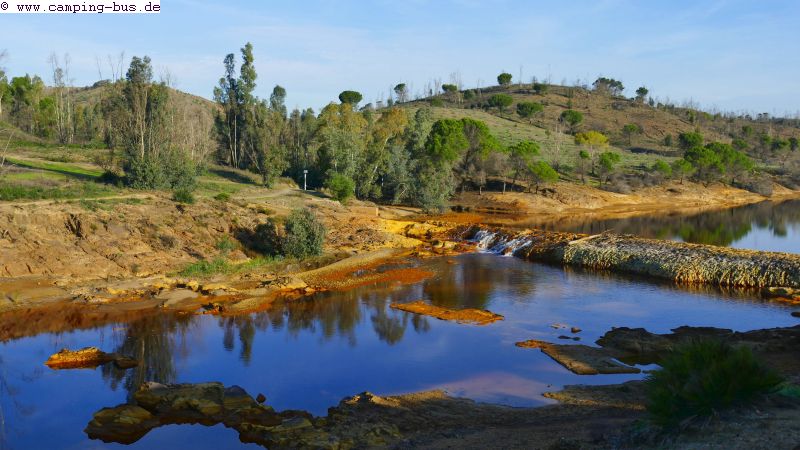 Mit dem Wohnmobil von den grünen Hügeln im Westen Andalusiens zu den riesigen Getreidefeldern in der EbeneTeil 10 von 24: Reise mit dem Wohnmobil durch Spanien und Portugal im Herbst/ Winter 2023/2024 Wir kurven noch etwas durchs stillgelegte Minengelände der Minas de Rio Tinto und bleiben dann zwei Tage im grünen Hügelland Andalusiens südlich des Aracena-Gebirges im hübschen Dorf Berrocal. Weiter geht´s zum fast ausgetrockneten Stausee Corumbel-Bajo bei La Palma del Condado. Ab hier gibt es riesige Getreidefelder in einer flachen Landschaft. 23. bis 25.11. Nerva - Berrocal 43 km - Tag 44 und 45Von unserem schönen ruhigen Übernachtungsplatz an den bunten Abraumhalten geht"s nach Minas de Riotinto zum Wassertanken auf dem Stellplatz. Von hier fahren wir ins alte stillgelegte Minengelände.