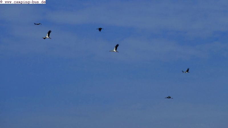 ... und weitere in der Luft. Ob die auf der Durchreise sind? Weitere Storchennester haben wir bei unserer Fahrt durch die Umgebung nicht gesehen.