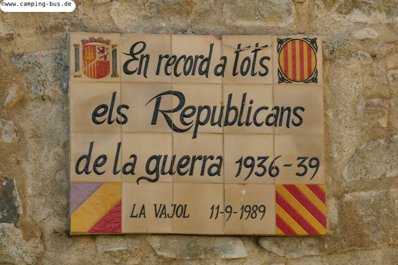 13./14.03. Coll de Manrella - La Vajol 4 kmLa Vajol, die letzte Hauptstadt der Zweiten Spanischen Republik!La Vajol ist ein hübsches Bergdorf mit 112 Einwohnern. Es liegt knapp 4 Kilometer von der Grenze zu Frankreich am Coll de Manrella und 10 Kilometer von La Jonquera ( E 15 / AP-7 Frankreich Barcelona ) entfernt. Durch La Vajol führte eine wichtige Route der Flüchtlinge nach der Machtübernahme durch die faschistische Franco-Diktatur. Zum Ende der Zweiten Republik ließen sich Teile der Regierung in La Vajol nieder und in den letzten Tagen flüchtete auch der Präsident der Republik in diesen Ort. Insofern war es die letzte Hauptstadt der Zweiten Republik. Von hier flüchteten die Regierungsmitglieder Anfang Februar 1939 über die Grenze nach Frankreich. Bereits 1937 hatte Regierungspräsident Juan Negrín eine Mine beschlagnahmt und hier den Staatsschatz ( Gold und Kunstwerke ) verstecken lassen. Dieser wurde im Februar 1939 zur vorübergehenden Verwahrung an den Völkerbund in Genf übergeben.