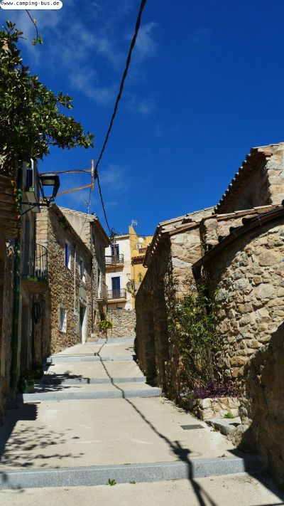 Die Straße führt weiter bis zum Castell de Requesens. Während unserer Mittagspause sind wir überrascht von relativ viel Verkehr. Bei einer Erkundung zu Fuß stelle ich fest, dass der Weg eher schmaler wird und soweit ich gehe, gibt es keine Ausweichstellen. So bleiben wir bis zum nächsten Morgen auf unserem Platz mit Aussicht und freuen uns über tausende Lichter unter uns in der Dunkelheit ( nicht fotografiert ) .
