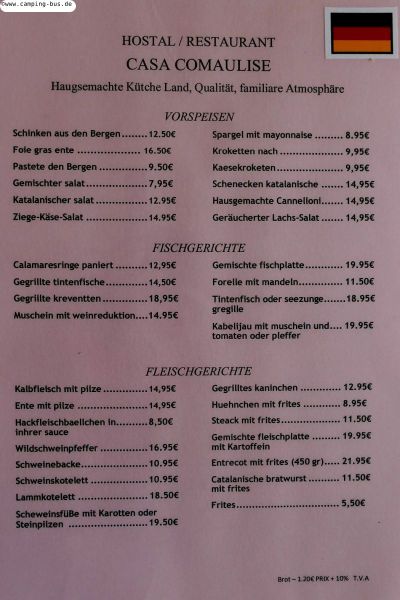Überrascht stellen wir fest, dass es in La Vajol auch in dieser Zeit des Jahres zwei geöffnete Restaurants gibt. Wir besuchen das sehr gute Restaurant Hostal "Casa Comaulis". Es gibt sogar eine deutschsprachige Speisekarte und die Verständigung mit dem netten Betreiber des Restaurants ist kein Problem.