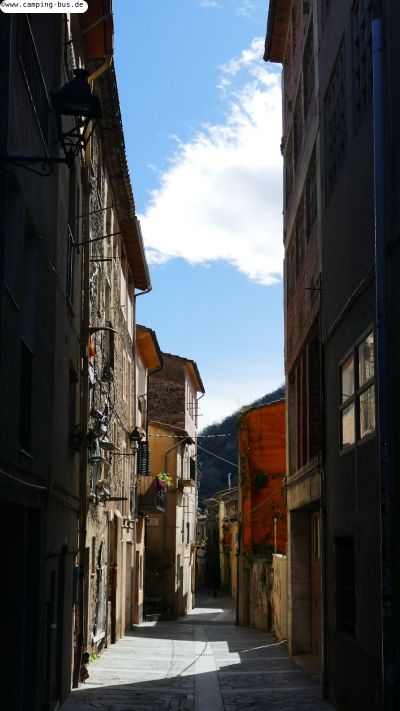Als ersten Ort auf der französischen Seite der Grenze erreichen wir Prats de Mollo. In diesem hübschen alten Bergdorf war 2014 der Wendepunkt unserer Reise durch Zentralmassiv und Pyrenäen und wir wurden von sehr netten Wohnmobilnachbarn zu einem Wohnmobildinner in unserem Campingbus eingeladen! Die Geschichte dazu und Bilder aus Prats de Mollo gibt es in diesem Reisebericht: