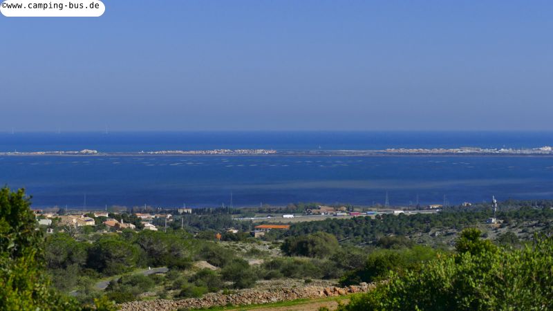 Mit dem Wohnmobil vom Leucate-See durch die Petite Camargue in die Ardeche-SchluchtTeil 16 von 17: Überwintern mit dem Wohnmobil in Spanien und Portugal im Winter 2025/2026 Nutria und Bisamratte, blühende Orchideen, Euphorbien, Iris, Perlhyazinthen und Blumenbinsen, das Mittelmeer und der See von Leucate, die Petite Camaergue sowie die Ardeche-Schlucht - dieser Teil unserer Reise bietet ganz besonders viel Fauna, Flora und Landschaft. 20./21.03. Opoul-Perillos / Salvaterra - Fitou 14 kmWir kommen dem Mittelmeer nochmal etwas näher mit Blick auf den See von Leucate und die verschiedenen Ortsteile zwischen See und Meer.