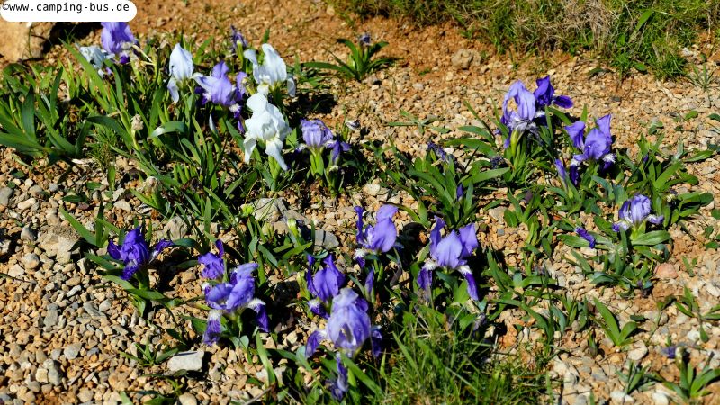 Um uns herum blühen Orchideen, Euphorbien, Iris, Perlhyazinthen und Blumenbinsen.