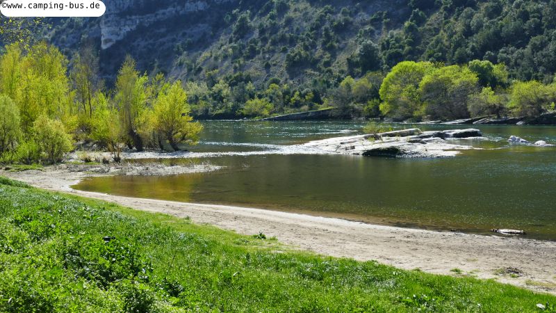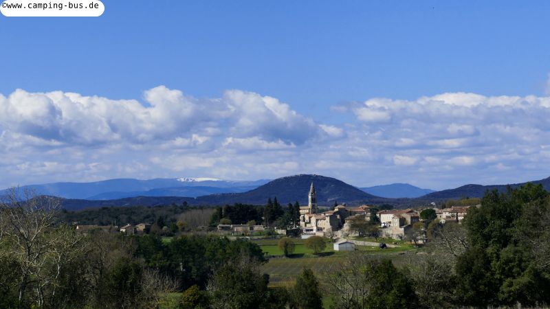 23./24.03. Rhône-Sète-Kanal - Vagnas 99 kmMontagmorgen verlassen wir endgültig die Nähe des Mittelmeeres. Durch die frühlingsgrüne Landschaft fahren wir in die Nähe der Ardeche und verbringen den Tag auf einem schönen Naturplatz mit Blick auf Vagnas mit den Cevennen im Hintergrund und Labastide de Virac mit dem Chateau de Rour.
