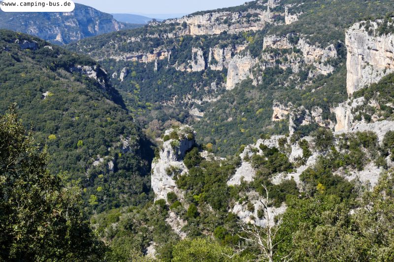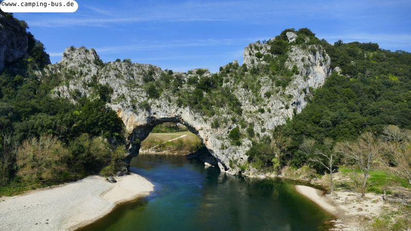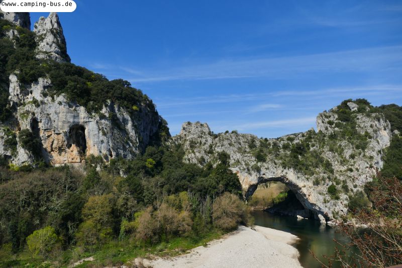 Wenn man die Pont d`Arc und den Adlerfelsen von Osten in der Sonne sehen will, muss man bis zum späten Vormittag am Aussichtspunkt sein.