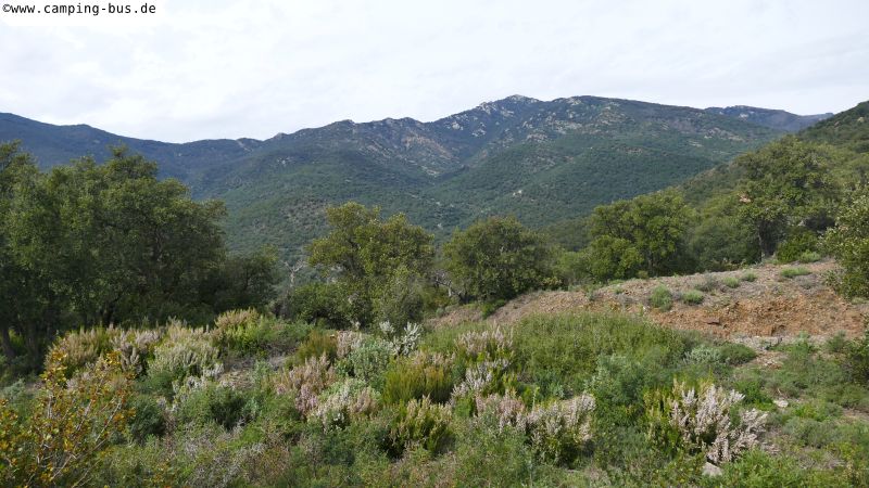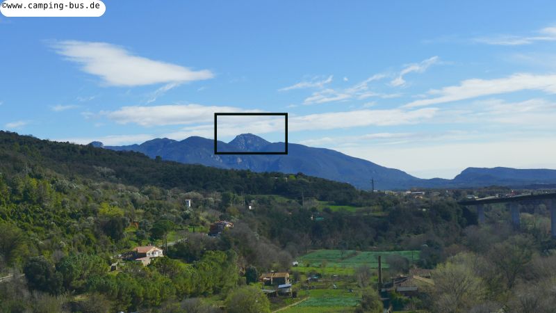 Nördlich von Cantallops haben wir einen Platz mit Aussicht als Ziel, der leider durch Baumaschinen blockiert ist. Nach einigen hundert Metern bergaufwärts finden wir einen kleinen Platz am Wegesrand mit Blick in die Berge, in die Ebene bis zum Mittelmeer und zu den Hochhäusern von Empuriabrava.