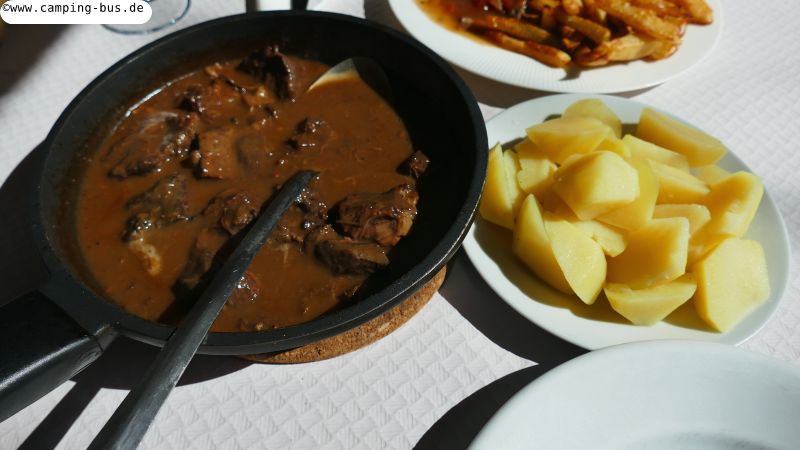 Überrascht stellen wir fest, dass es in La Vajol auch in dieser Zeit des Jahres zwei geöffnete Restaurants gibt. Wir besuchen das sehr gute Restaurant Hostal "Casa Comaulis". Es gibt sogar eine deutschsprachige Speisekarte und die Verständigung mit dem netten Betreiber des Restaurants ist kein Problem.