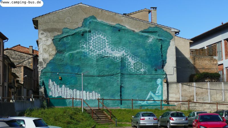 Übernachtet haben wir in Castellfollit auf einem Parkplatz am Ortsrand zwischen zwei abgestellten unbewohnten Womos und einem abgestellten Pferdeanhänger.