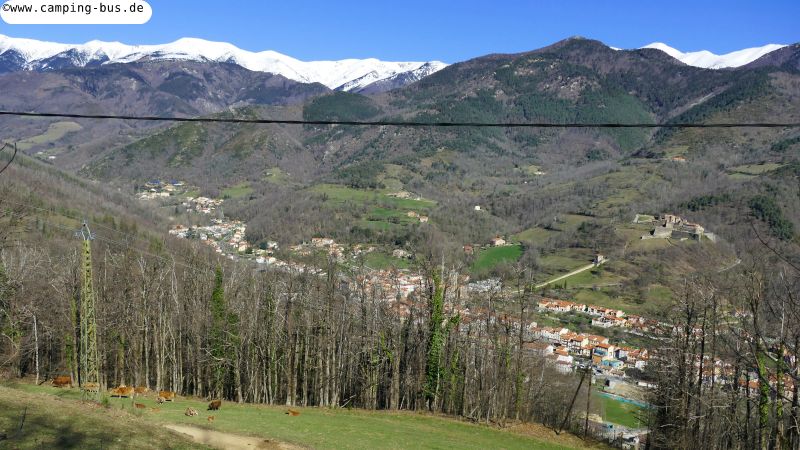 Als ersten Ort auf der französischen Seite der Grenze erreichen wir Prats de Mollo. In diesem hübschen alten Bergdorf war 2014 der Wendepunkt unserer Reise durch Zentralmassiv und Pyrenäen und wir wurden von sehr netten Wohnmobilnachbarn zu einem Wohnmobildinner in unserem Campingbus eingeladen! Die Geschichte dazu und Bilder aus Prats de Mollo gibt es in diesem Reisebericht: