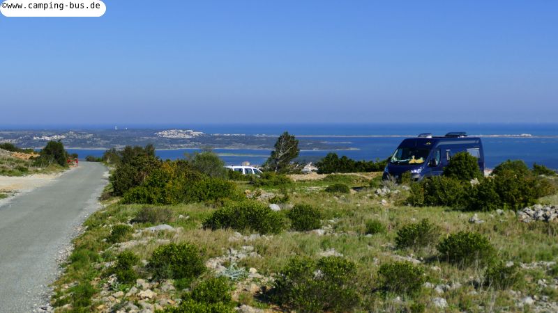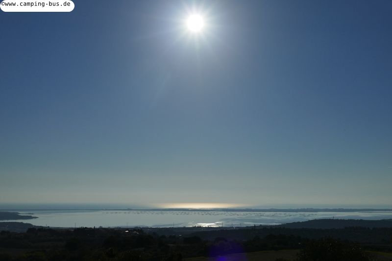 Mit dem Wohnmobil vom Leucate-See durch die Petite Camargue in die Ardeche-SchluchtTeil 16 von 17: Überwintern mit dem Wohnmobil in Spanien und Portugal im Winter 2025/2026 Nutria und Bisamratte, blühende Orchideen, Euphorbien, Iris, Perlhyazinthen und Blumenbinsen, das Mittelmeer und der See von Leucate, die Petite Camaergue sowie die Ardeche-Schlucht - dieser Teil unserer Reise bietet ganz besonders viel Fauna, Flora und Landschaft. 20./21.03. Opoul-Perillos / Salvaterra - Fitou 14 kmWir kommen dem Mittelmeer nochmal etwas näher mit Blick auf den See von Leucate und die verschiedenen Ortsteile zwischen See und Meer.