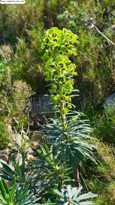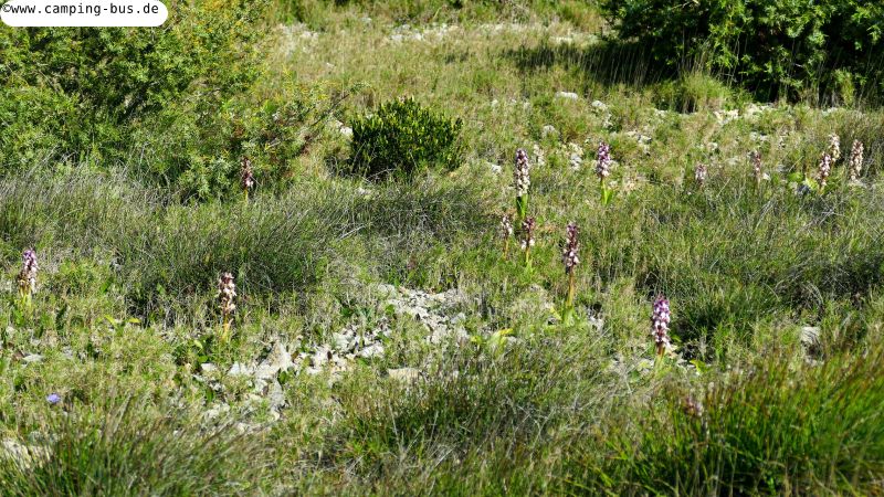 Um uns herum blühen Orchideen, Euphorbien, Iris, Perlhyazinthen und Blumenbinsen.