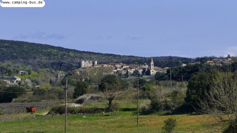 23./24.03. Rhône-Sète-Kanal - Vagnas 99 kmMontagmorgen verlassen wir endgültig die Nähe des Mittelmeeres. Durch die frühlingsgrüne Landschaft fahren wir in die Nähe der Ardeche und verbringen den Tag auf einem schönen Naturplatz mit Blick auf Vagnas mit den Cevennen im Hintergrund und Labastide de Virac mit dem Chateau de Rour.