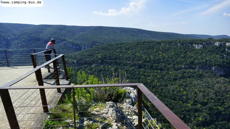 Wenn man die Pont d`Arc und den Adlerfelsen von Osten in der Sonne sehen will, muss man bis zum späten Vormittag am Aussichtspunkt sein.