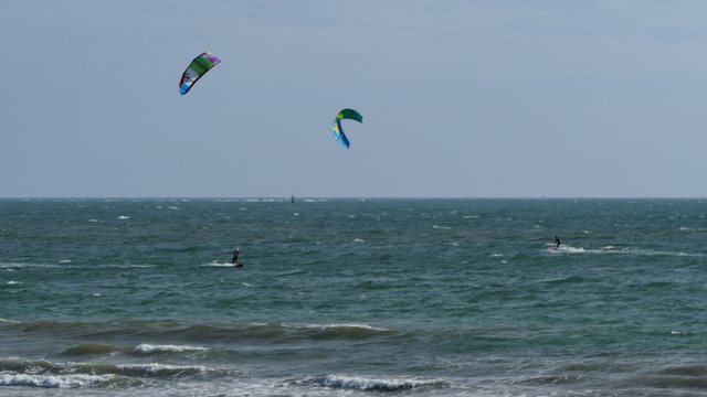 Am Nachmittag nimmt der Wind zu und Kitesurfer sorgen für unsere Unterhaltung.