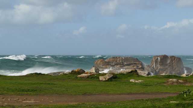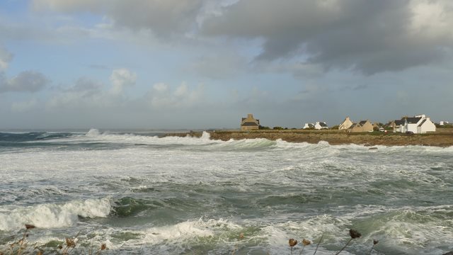 Herbstreise mit dem Wohnmobil in die Bretagne 10.10. bis 06.11.2017Teil 3 von 8: Penmarch - der Südwestzipfel der BretagneSt. Guénolé in der Gemeinde Penmarch mit dem Phare d`Eckmühl als weithin sichtbares Wahrzeichen bilden den Südwestzipfel der Bretagne. Ungeschützt treffen die Wellen des Atlantik hier auf die Küste. Wir erleben hier ein besonderes Spektakel weil auch noch Sturm die Wellen antreibt.