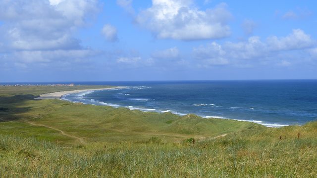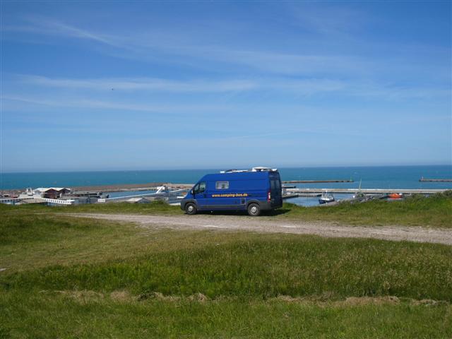 Reisebericht Teil 5 von 10: Mit dem Wohnmobil durch Schleswig-Holstein und Dänemark im Juni/Juli 2010, ergänzt im August 2014 (Bulbjerg Klit, Klim Bjerg)Von der Fjordlandschaft in Dänemarks Nordwesten über Hanstholm zum "Nordkapp" bei SkagenWir werfen nochmal einen Blick über Wald und Wasser, bevor wir uns dem nächsten Höhepunkt ... ... im wahrsten Sinne des Wortes zuwenden. Auf der Insel Mors steigt gegenüber von Thisted der "Hanklit" 89 m fast senkrecht aus der "Thisted Bredning" auf. Zum Glück geht es auf der Landseite nicht ganz so steil bergauf, ... ... aber für den letzten Teil des Anstiegs auf 89 m Höhe sind Sandalen nicht empfehlenswert. Von hier oben hat man einen perfekten Rundumblick über Wasser und Küste ... ... sowie Wiesen und Felder im hügeligen Hinterland südlich des Hanklit auf der Insel Mors. Wir verlassen die Insel - mit dem Plan einer Rückkehr im 2. Teil der Reise - über die Vilsund-Brücke. Nur ca. 30 Minuten nach Verlassen des Hanklit erreichen wir über Thisted ... ... wieder die Nordsee am Strand nördlich von Klitmoller, ... ... dessen Häuser man von hier auf der Landzunge im Süden erkennen kann. Wir fahren aber weiter nach Norden und erreichen nach ca. 10 Minuten den Hafen von Hanstholm und kurz danach den im WoMo-Führer beschriebenen Parkplatz am Skulpturenpark. Eigentlich ist es wieder ein Traumplatz ... ... mit Blick auf den Hafen und ohne Verbotsschilder für Wohnmobile. Aber so recht haben wir keine Lust hierzubleiben ... ... und fahren zum nächsten im WoMo-Führer beschriebenen Badeplatz am Vigso Strand. In unserer 2005-Auflage noch als Übernachtungsplatz beschrieben, ... ... hat sich dies inzwischen leider geändert, wie die Schilder an der Zufahrt eindeutig zeigen. Wir machen hier erstmal in aller Ruhe Mittagspause und beraten die Lage. Zurück nach Hanstholm ... oder? 180 km sind es über Hirtshals bis Grenen, wo wir ja eigentlich heute zum Sommeranfang seien wollten. Die Sonne hat gerade erst "Halbzeit", also fahren wir los zum Nordzipfel Dänemarks. Ergänzung vom August 2014: Im August 2014 machen wir einen Abstecher in das Bulbjerg-Klit-Naturschutzgebiet. Nur auf den Parkplätzen in der Nähe der Küste gilt nachts ein Parkverbot für Wohnmobile und andere Fahrzeuge. Von der Steilküste des Bulbjerg hat man einen weiten Blick über Meer und Strand, die Hauptattraktion sieht man aber nur von unten! Bulbjerg Klit ist der einzige Vogelfelsen Dänemarks. Bis sie flugfähig sind sollten die Kleinen hier keinen Schritt zuviel machen. Wir entdecken einen schönen Parkplatz außerhalb der nächtlichen Parkverbotszone. Hunde dürfen an der Leine mit ins Naturschutzgebiet genommen werden. In der Nähe des Parkplatzes gibt es einen eingezäunten "Hundewald", in dem sie ohne Leine aber unter Kontrolle herumlaufen dürfen. Bei einer kleinen Wanderung sehen wir Islandmoos ... ... und blühende Heide. Wir besuchen auch den alten Kalkofen am Klim Bjerg ... ... und finden dort den im WOMO-Führer zur Übernachtung empfohlenen Parkplatz. Der liegt aber nah an der Straße ... ... und deshalb gefällt uns der ebenfalls im WOMO-Führer genannte etwas abgelegenere Parkplatz am alten Kalkbruch besser. Zum Abend bekommen wir hier sogar Verstärkung von Deutschen, die ebenfalls mit dem Büchlein aus dem Womo-Verlag unterwegs sind und genau solche Plätze lieben. Vom Parkplatz führt ein 1,5 km kurzer Rundwanderweg um den Klim Bjerg und bietet schöne Ausblicke über Wald und Feld bis zur Nordsee. Ende dieser Einfügung vom August 2014! Nach ca. 2 1/2 Stunden stehen wir an der Landzunge an Dänemarks Nordkapp, die Nordsee und Ostsee bzw. Skagerrak und Kattegat voneinander trennt. Vom Aussichtspunkt am Parkplatz sieht man: Schiffe, Schiffe, Schiffe! Auf dem von 9:00 Uhr bis 18:00 Uhr gebührenpflichtigen Parkplatz gibt es gekenzeichnete Parkplätze für "Camper" - und KEIN Übernachtungsverbot! Ergänzung vom August 2014: Übernachtung mit Wohnmobil auf dem Platz jetzt gebührenpflichtig! Wir bevorzugen jedoch den großen Schotterplatz etwas abseits, lösen für die restlichen 1 1/2 Stunden bis 18 Uhr ein Parkticket für 18 Kronen.