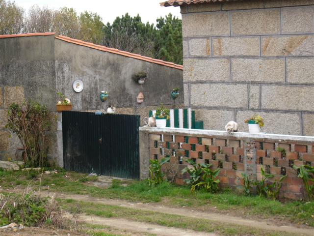 20. und 21.12.2007 Ausflüge auf O GroveVon unserem Campingplatz gehen wir zunächst nach San Vicente do Grove. Von unserem Platz aus sehen wir eine lange Reihe von Appartementhäusern oberhalb des Ortes. Bei näherer Betrachtung wirken sie alle menschenleer - sie werden wohl nur in der warmen Jahreszeit genutzt. Von der Straße vor den Häusern blickt man über den kleinen Hafen in die Bucht mit dem Strand "Praia Raeiros" und dem Campingplatz Muineira rechts davon. Am Bildrand rechts erkennt man gerade noch den Beginn der schmalen Landzunge mit dem Strand "Praia da Lanzada", die O Grove mit dem Festland verbindet. Durch einen kleinen Waldweg kommen wir auf die Straße am Nordrand von O Grove. Hier entdecken wir ein kleines Dorf ohne Touristenunterkünfte mit Kohl und anderem Gemüse in den Gärten ... ... neugierigen Katzen und interessanten Hausdekorationen. Hat sich dieser Hausbesitzer die Idee für die Jakobsmuschelfassade von der Kirche in La Toxa abgeschaut - oder umgekehrt? Die Küste der Nordseite erinnert an die skandinavischen Schären: Felsen schieben sich ins Meer, im Hintergrund die "Illa de Salvora" am Eingang der "Ria de Arousa". Viele kleine, teilweise winzige Strände findet man auf der Nordseite von O Grove zwischen den Felsen, dahinter ... ... (noch, hoffentlich bleibt das so) keine Ferienhäuser sondern blühender Ginster. In der "Ria de Arousa" nördlich von O Grove sieht man die Zuchtanlagen für Meeresfrüchte, im Hintergrund die auf über 600 m ansteigende "Serra da Barbanza" zwischen der "Ria de Muros e Noia" und der "Ria de Arousa". Falls Sie über eine Suchmaschine oder einen externen Link direkt auf diese Seite gekommen sind: Hier gibt es den vollständigen Reisebericht "Nordwestspanien und Algarve 2007/2008". Hier geht es direkt zur nächsten Fotoseite.