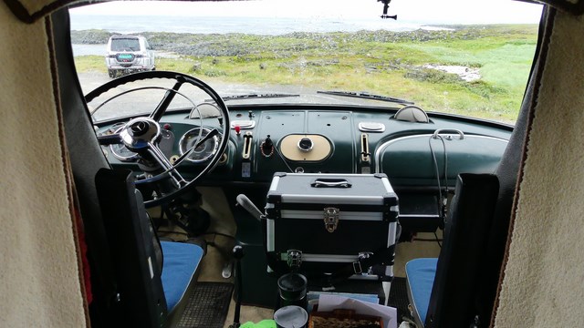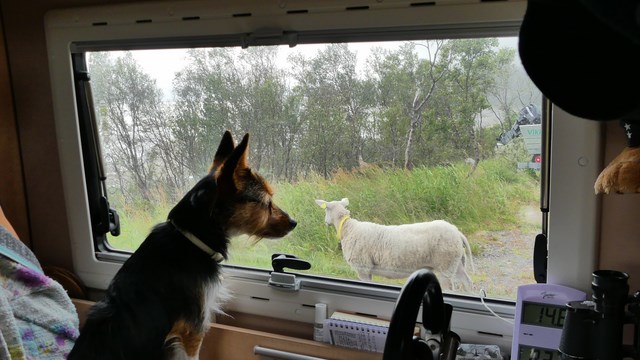 Mit dem Wohnmobil zum nördlichsten Festlands-Leuchtturm der Welt (?) und anderen nördlichen Superlativen bei Slettnes FyrTeil 6 von 18: Mit dem Wohnmobil durch Lappland 16.06. bis 07.09. 2016 Nach drei Tagen am Naturreservat Tanamunningen fahren wir zum "Alternativen WOMO-Nordkapp" am Slettnes Fyr, dem nördlichsten Leuchtturm des europäischen Festlands und wahrscheinlich der Welt. In der Umgebung gibt es noch einige nördliche Superlative die dem "Nordkapp" Konkurrenz machen und mal wieder die Mitternachtssonne. Tanamunningen - Nordkyn - Gamvik - Slettnes Fyr 06. bis 12.07.201606. bis 09.07. TanamunningenWas sieht man bei dieser Wohnlage am Tana aus dem Schlafzimmerfenster? Das sieht man! Aus unserem Campingbus kann man sehr gut den Wechsel von Ebbe und Flut erkennen, nach einigen Stunden sind die Sandbänke verschwunden. Bella interessiert sich weniger für den Gezeitenwechsel. Sie beobachtet aus dem Wohnzimmerfenster die Schafe. Die Schafe suchen den kühlen Schatten der spärlich wachsenden Birken. Vierhundert Meter entfernt hinter dem Vadsö-Kilometerstein 105 ... ... am Ende der Piste hat man freien Blick nach Norden und könnte dort um 0:11 Uhr die Mitternachtssonne sehen - wenn man hingehen würde. Tun wir aber nicht, die konnten wir nun schon mehrmals direkt aus dem Wohnmobil beobachten und die Zeit der Mitternachtssonne ist ja noch nicht vorbei. Im Süden führt das Tal des Tana landeinwärts, von dort über Tana bru sind wir zu diesem schönen Platz gekommen. 09. bis 11.07. Tanamunningen - Nordkyn-Straße - Mehamn - Gamvik - Slettnes Fyr 203 kmNach drei schönen Tagen am Naturreservat Tanamunningen wollen wir heute zum nördlichsten Punkt unserer Reise fahren, dem "alternativen Womo-Nordkapp (Schulz)" am Slettnes Fyr.Wie von der Wetterprognose angekündigt ist das Wetter ergraut. Wir fahren nördlich von Ifjord hinauf aufs Fjell, können aber fast nichts sehen. Je weiter wir nach Norden kommen um so nebliger wird es. Einen Lichtblick gibt es als wir nach dem ersten Teil der Fjell-Überquerung abwärts fahren und gegenüber auf der Nordkyn-Halbinsel die ansteigende Straße erkennen. In Gamvik sehen wir im Ort plötzlich einen Fuchs. Er läuft ganz zutraulich neben uns über eine Mauer. Kurz nach unserer Ankunft am Ziel umrundet ein anderer unseren Campingbus. Der ist hier Stammgast am Parkplatz und wird bei seiner Hoffnung auf Futter nicht enttäuscht. Ebenfalls recht zutraulich wirkt dieser Steinwätzer. Im Abstand von wenigen Metern läuft er vor mir über den Weg und schaut mich immer wieder an. Hier auf dem Parkplatz am nördlichsten Leuchtturm des europäischen Festlandes haben sich einige wohnmobile Besucher eingefunden. Rechts von unserem Blauen Löwen seht Ihr ein etwas ungewöhnliches LKW-Wohnmobil. Es gehört Roberta und Stefan. Seit einiger Zeit verfolgen wir uns gegenseitig auf Facebook, hier und heute lernen wir uns persönlich kennen. Auf Facebook berichten sie als campofant über ihre für 2 Jahre geplante Reise und in ihrem Blog. Am nächsten Morgen morgen bekommen wir die Chance uns die Campofanten-Wohnung anzuschaun. Ist das ne tolle Kiste? Schaut selbst! Dann müssen wir uns leider voneinander verabschieden. Roberta und Stefan fahren weiter in Richtung russische Grenze, wir demnächst nach Westen. Hier sehen wir sie auf dem Weg vom Platz in Richtung Gamvik durch die karge arktische Landschaft fahren. Beim Sapziergang am Abend vom Leuchtturm "landeinwärts" ... ... sehe ich mit bloßen Augen unser Ziel des nächsten Tages. 11./12.07. Slettnes Fyr - Slettnes Nord 1.700 mHeute haben wir echt "Strecke gemacht" beim Standortwechsel - 1.700 Meter! Wir ziehen um auf den nördlichsten Festlandsparkplatz Europas und wahrscheinlich der Welt. Hier sind wir jetzt am nördlichsten Punkt unseres bisherigen Lebens, nur minimal südlich des sogenannten Nordkapps. Diesen Nordplatz der Superlative wollen sich auch unsere tschechischen Freunde Irena und Jiri nicht entgehen lassen und treffen wie vereinbart mittags mit ihrem Pössl hier ein. Den nördlichsten Festlandsleuchtturm der Welt haben wir von hier auch im Blick und das Sandsträndchen unterhalb des Leuchtturms. Etwa zweihundert Meter muss man gehen um im Westen den nördlichsten Punkt des europäischen Festlands zu sehen, den Kinnarodden. Dank der guten Sicht können wir heute die Finnmarken auf dem nördlichsten Teil ihrer Reise von Bergen nach Kirkenes beobachten. Gegen 18:30 Uhr passiert sie den Kinnarodden und erreicht dabei die nördlichste Position der Hurtigruten-Linienschiffe. Von hier fährt sie nach Mehamn, dem nördlichsten Hafen der Linie. So, nun mal ehrlich: Nach soviel nördlichsten Superlativen - welche bietet das sogenannte "Nordkapp" weiter im Westen? Okay, den nördlichsten Menschenmassenauflauf der Welt :-) Aufenthalt in Mehamn hat die Finnmarken von 19:15 Uhr bis 19:30 Uhr. Gegen 20:00 Uhr erscheint sie wieder im Blickfeld, ... ... kommt an unserem Wohnzimmer vorbei ... und einige Minuten später passiert sie Slettnes Fyr bei ihrer Weiterfahrt nach Berlevåg. Hier ein Blick über die arktische Landschaft mit ihrem typischen Birkenwald. Ihr seht keinen Wald, keine Bäume? Dann schauen wir mal gemeinsam genauer auf den Boden: Hier wachsen sie, die Zwerg-Birken. Kälte und Sturm lassen sie mit ihren Ästen über den Boden kriechen statt diese in die Höhe zu recken - Zwergbirken sind schlau :-). Schlau sind auch die Menschen die hier Schutzhütten und Toilettenhäuschen ... ... ganz fest verankern um sie am Wegfliegen bei den heftigen Stürmen zu hindern. In der "Nacht" gibt es mal wieder Mitternachtssonne. Kurz vorm Tiefststand um 0:12 Uhr in Slettnes erscheint sie unter den Wolken. Sie wird dann aber wieder mal mehr, mal weniger verdeckt. Dies führt zu ständig wechselnden Farben der Landschaft. Genau zu diesem Zeitpunkt fährt das Hurtigruten-Schiff Nordkapp am Leuchtturm vorbei auf dem Weg von Berlevåg nach Mehamn. Mit diesem Bild von 00:14 Uhr verabschieden wir uns von Slettnes. Weiter geht e