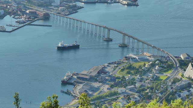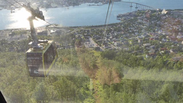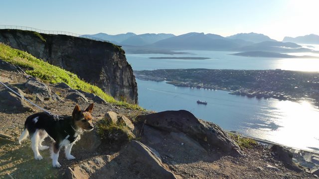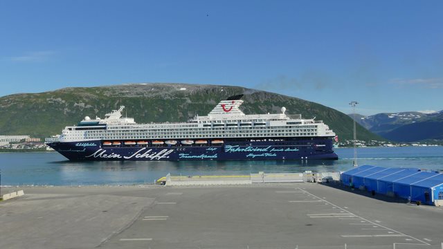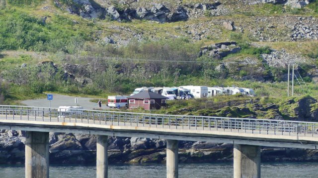 Mit dem Wohnmobil von Skjervoy nach Tromsö - Treffen bei "Mein Schiff" und der Blick auf Tromsö von obenTeil 10 von 18: Mit dem Wohnmobil durch Lappland 16.06. bis 07.09.2016 Mit insgesamt drei Fährpassagen bewältigen wir die Strecke von der Insel Arnøya nach Tromsö. Wir machen einen Abstecher in die hübsche kleine Hafenstadt Skjervøy bevor wir "Mein Schiff" im Hafen von Tromsö besuchen. Mit der Fjellheisen-Seilbahn geht es auf den Aussichtsberg von Tromsö. Nach einem Stadtbummel in der Metropole des Nordens fahren wir noch für einen Tag auf die Insel Ringvassøya bevor wir Norwegen für eine Woche verlassen. Arnøya - Skjervøy - Tromsö - Ringvassøya 23.07. bis 26.07.201623./24.07. Arnøya - Laukøya - Skjervøy - Olderdalen - Lyngseidet - Svensby - Breivikeidet - Tromsö 187 kmNach vier wunderschönen Tagen verlassen wir die Paradiesinsel Arnøya. Die Fähre ab Lauksundskaret erreicht nach fünf Minuten den Anleger von Nikkeby auf der Nachbarinsel Laukøya. Mit Blick auf die beiden Inseln legt die Fähre nach weiteren 25 Minuten in Storstein an. Bei der Fahrt zum Anleger Storstein auf der Insel Kågen sieht man durch den Sund zwischen Arnøya und Kågen die nördlichen Ausläufer der Lyngenalpen. Preis: 107 NOK für Fahrer und Fahrzeug bis 6 m, 39 NOK für Erwachsene. Zum Einkaufen fahren wir über die Brücke von Kågen nach Skjervøy. Viele bunte Boote und Häuser gibt es in dem hübschen Ort. Zufällig entdecken wir am Ende des Industriegebietes am Hafen eine kostenlose V+E-Station, dahinter könnte man auch mit dem Womo stehen und abends die Hurtigrutenschiffe beobachten. Wir haben heute aber noch einen anderen Schiffs-Termin und müssen deshalb weiter. Zunächst machen wir noch einen Abstecher ans Ortsende. Von hier sieht man Skjervøy mit dem über 1.200 m hohen Gebirgsmassiv der Insel Kågen im Hintergrund. Wir fahren über die Brücke zurück nach Kågen, ... ... vorbei an dem Rastplatz auf dem wir vor der Fahrt nach Arnøya auch gestanden haben. Über Kågen erreichen wir durch einen Tunnel das Festland und letztlich über die E 6 den Fährhafen von Olderdalen. Von hier und auch bei der Fährpassage nach Lyngseidet haben wir die Lyngenalpen gut im Blick - dem T-Shirt-Wetter sei Dank. Preis: 150 NOK für Fahrer und Fahrzeug bis 6 m, 50 NOK für Erwachsene. Die dritte Fährpassage des Tages auf dem Weg nach Tromsö von Svensby nach Breivikeidet bietet keine so reizvollen Fotomotive. Preis: 107 NOK für Fahrer und Fahrzeug bis 6 m, 39 NOK für Erwachsene. Nach unserer Drei-Fähren-Tour ist "Mein Schiff" im Hafen von Tromsö unser Ziel. Hier haben wir uns mit Karina verabredet - winkend links im Bus. Im Sommer begleitet sie unter anderem Kreuzfahrt-Passagiere bei Ausflügen in Tromsö und Umgebung, im Winter bietet sie mit ihrer eigenen Firma Nordlichttouren an. Dabei haben wir sie im Dezember 2012 kennengelernt und sind seitdem in Kontakt. Hier der Bericht dazu mit vielen Bildern aus Tromsö im Winter und natürlich von Polarlichtern - eine sehr empfehlenswerte Reise: http://www.camping-bus.de/Reiseberichte/Tromsoe/Nordlicht-Tromsoe-Winter.html Aus Karinas Büro am Kreuzfahrtterminal können wir "Mein Schiff" beim Ablegen "auf Augenhöhe" beobachten. Dann geht es mit der Fjellheisen-Seilbahn auf den Aussichtsberg von Tromsö. Besser als heute kann das Wetter dafür kaum sein. Nach dem Abendessen am Bergrestaurant ... ... erforschen wir die Umgebung - einigermaßen schwindelfrei sollte man dabei sein. Auch hier auf dem Berg am Abend kann man heute mit nackten Armen und Beinen wandern ohne zu frieren. Beim Blick nach Norden entdecken wir unter uns eine große Wohnmobilansammlung. Anscheinend ist das ein relativ neuer Stell- oder Campingplatz, auf dem Satellitenbild ist an der Stelle zur Zeit noch ein Sportplatz zu sehen. Bitte informiert mich wenn Ihr das richtige Satellitenbild bei Google Maps seht. Die nächste Bahn kommt und unten läuft gleich nach zwei Stunden unser Parkschein ab - nun muss Karina rasch ihr Stativ einpacken. Bei der Fahrt bergab gibt es Gegenverkehr - zum Glück am Nachbarseil :-). 24./25.07. Tromsö - Ringvassøya 35 kmHeute haben wir noch einen Stadtbummel gemacht vom zentrumsnahen Parkplatz mit V+E. Auf Fotos aus Tromsö verzichte ich hier, die gibt es ja im oben verlinkten Bericht. Nur Bellas Begegnung mit einem Eisbären zeige ich hier noch: An der Südküste von Ringvassøya übernachten wir auf einem Wanderparkplatz. 25./26.07. Ringvassøya-Südküste - Mikkelvik - Glimbukt 116 kmAm Montag fahren wir quer über die Insel bis Mikkelvik. Am Ortsende gibt es einen neuangelegten Parkplatz. Über die Bucht hinweg blickt man auf den Fähranleger von Rebbenesøya, der gegenüberliegenden Insel. Dort steht noch wie 2011 das vermutlich kleinste Postamt der Welt - die winzige Hütte rechts vor den Felsen. Diesmal fahren wir nicht dorthin, hier unser damaliger Reisebericht vom Besuch auf der grünen Insel im Nordmeer. Nördlich vom 70. Breitengrad wachsen hier Kartoffeln - dem Golfstrom sei Dank! Wir fahren zurück auf einen Parkplatz an der Glimbukt im Südosten von Ringvassøya. Von hier kann man gut den Schiffsverkehr beobachten. Am Abend sehen wir die Nordnorge auf dem Weg von Tromsö nordwärts. Unser 743-Stunden-Tag ist nun vorbei! Seit dem Sonnenaufgang am 25. Juni um 01:51 Uhr in Storuman gab es in der letzten Nacht den ersten Sonnenuntergang um 00:33 Uhr. 31 Minuten Nacht bis zum Sonnenaufgang um 01:04 Uhr! Beobachten konnten wir es nicht, nördlich von unserem Übernachtungsplatz sind Berge und es war stark bewölkt. In den nächsten Tagen machen wir einen Sprung nach Süden. Da werden wir wohl bald mal wieder etwas Dunkelheit bemerken. Über unseren Abstecher nach Kilpisjärvi in Finnland und die Fahrt durch Schwedisch-Lappland mit Elche gucken zurück nach Norwegen berichten wir im nächsten Teil unseres Reiseberichtes "Mit dem Wohnmobil durch Lappland". Hier geht es zur Gesamtübersicht dieses Reiseberichtes.