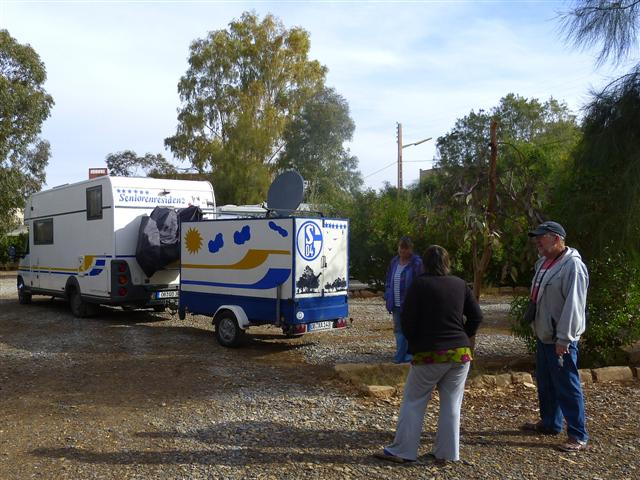 ... und fahrbare Seniorenresidenzen mit Hänger :-). Hohe schattenspendende Bäume haben uns schon vor 4 Jahren begeistert und so bleiben wir mehrere Tage auf diesem schönen Platz nach unseren 5 Freistehnächten zuvor.