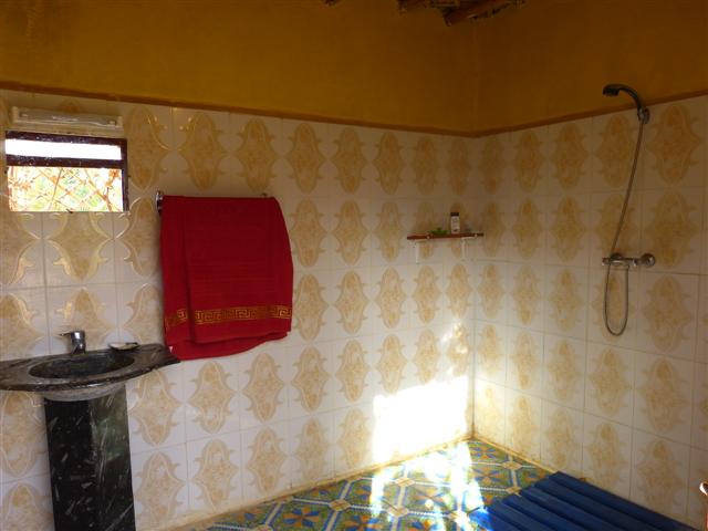 Die zwei "Dusch-Zimmer" sind riesig, alles ist neu und funktioniert einwandfrei. Noch wird das Wasser zum Duschen bei Bedarf durch einen Ofen erwärmt. Für den gesamten Platz besteht allerdings ein Öko-Konzept. Strom für die Bewässerungspumpen wird bereits durch eine Solaranlage erzeugt, eine Anlage zur Wassererwärmung durch die tagsüber fast immer scheinende Sonne ist geplant.