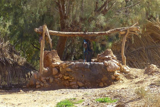 Wir machen einen Spaziergang bis zur Brücke über den Ziz-Fluss und entdecken gleich neben dem Campingplatzeingang diesen alten Zieh-Brunnen.