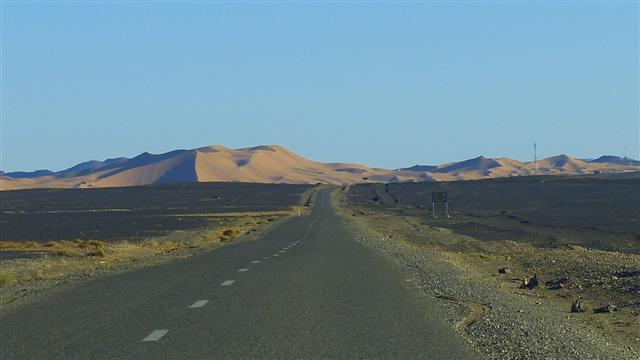 Südlich von Rissani führt die asphaltierte N 13 geradewegs zum Dünengebiet des Erg Chebbi.