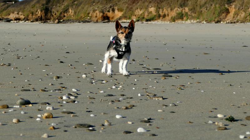 Der Dienstag begrüßt uns genau so wolkenlos wie sich der Montag verabschiedet hat. Allerdings weht ein kalter böiger Wind aus Osten. Bisher war meistens das Sweatshirt und manchmal das T-Shirt die richtige Bekleidung, heute ist eine warme Jacke empfehlenswert. Wir umrunden das Kap und machen einen Strandspaziergang am Plage de Tahiti. Der Name des Strandes ist Bella egal, sie freut sich über einige Runden Freilauf.