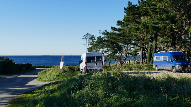 Nach wenigen Minuten erreichen wir Dienstagmorgen in Tregunc den Stellplatz am Plage de Kerlaeren.